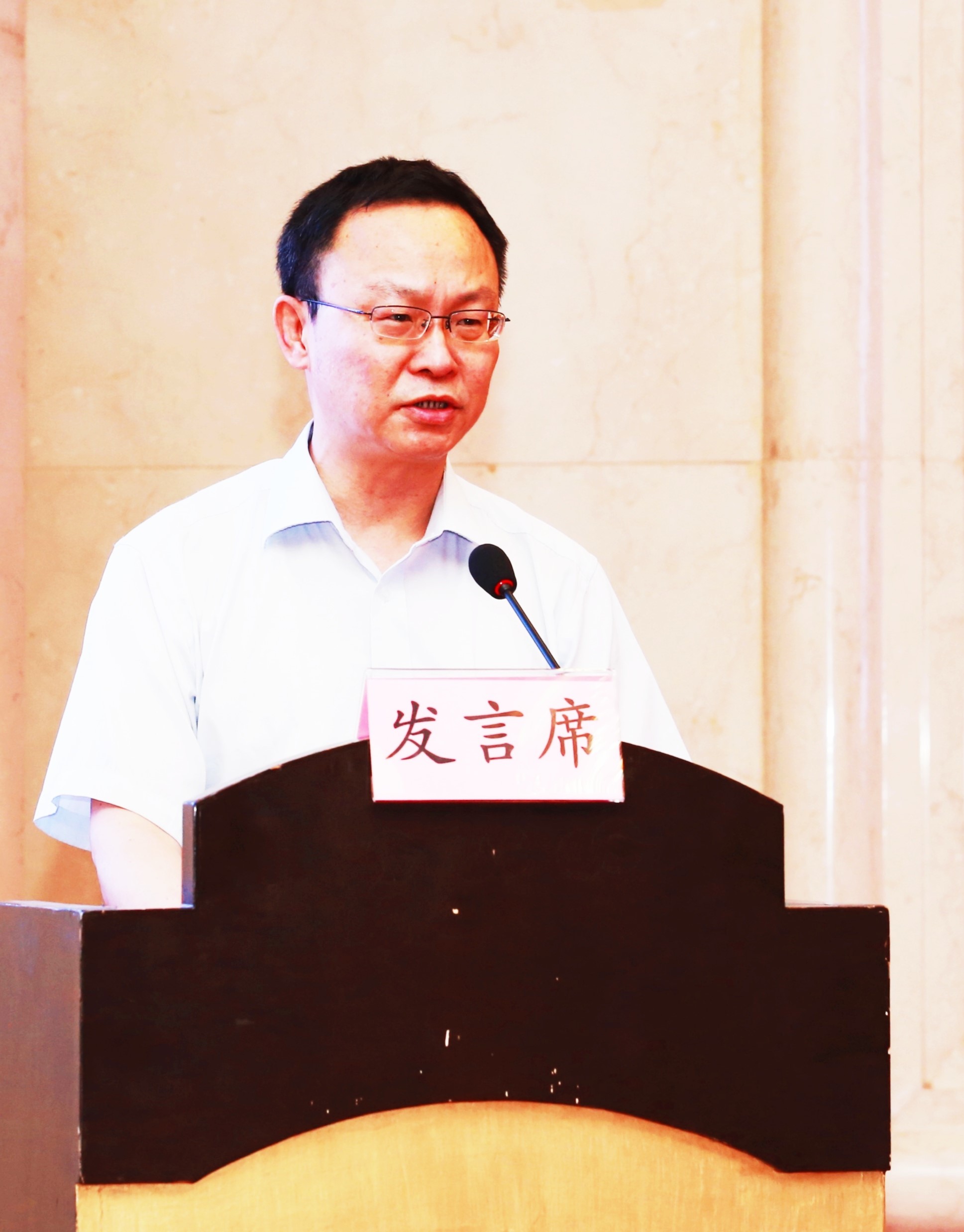 民盟中央生态环境委员会秘书长、民盟北京市城市建设与环境资源委员会副主任强海洋述职发言。陈宇/摄影