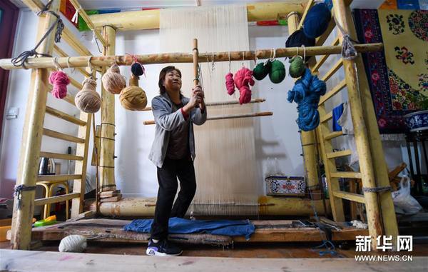 5月27日,段丽珍在织毯机前工作。新华社记者 彭源 摄