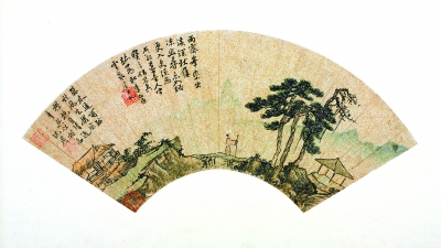 (明)沈周《山居图》扇面
