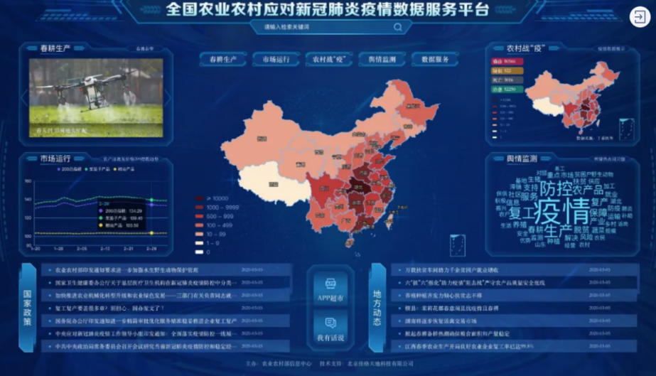 人勤春早春耕忙。在春耕备耕的关键时期,面对疫情防控的严峻形势以及春耕生产的难点堵点,佳格天地提供技术支持,抢抓农时,助力农业农村部快速上线了“全国农业农村应对新冠肺炎疫情数据服务平台”。