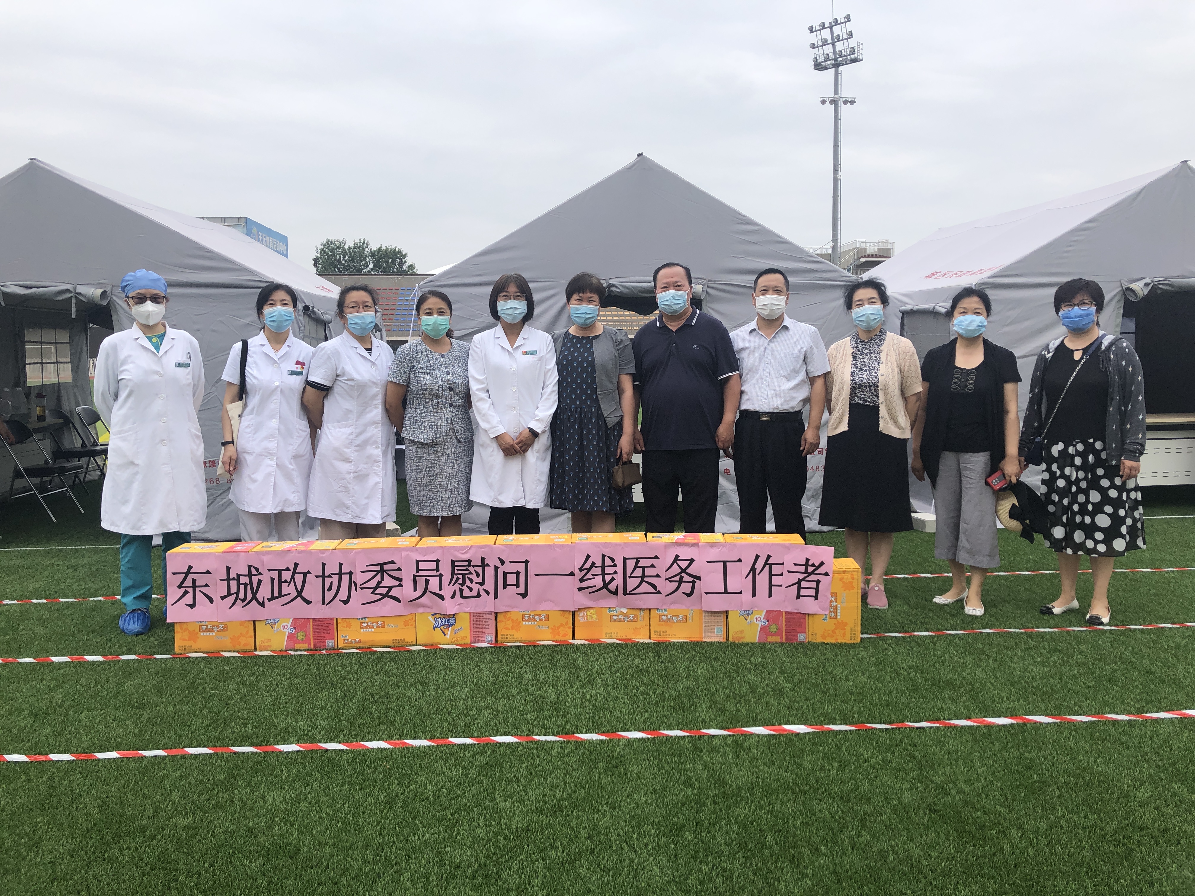 与时间赛跑,与疫情扩散赛跑,决不让来之不易的疫情持续向好形势发生逆转。东城区广大医务工作者逆向而行,再次投入战斗。区政协领导带领政协委员来到核酸检测点,慰问在此战斗的医务人员,并带去政协委员的问候及慰问品,并叮嘱医院负责同志一定要关心关爱一线工作的医务人员,做好个人防护和防暑降温工作,让医务人员保持充沛的体力战胜疫情。区工商联界别政协委员、北京国瑞兴业地产股份有限公司副总裁张瑾等委员提供了400箱饮料,赠送给东城区承担核酸检测任务的8家医院,慰问核酸检测一线医务人员。