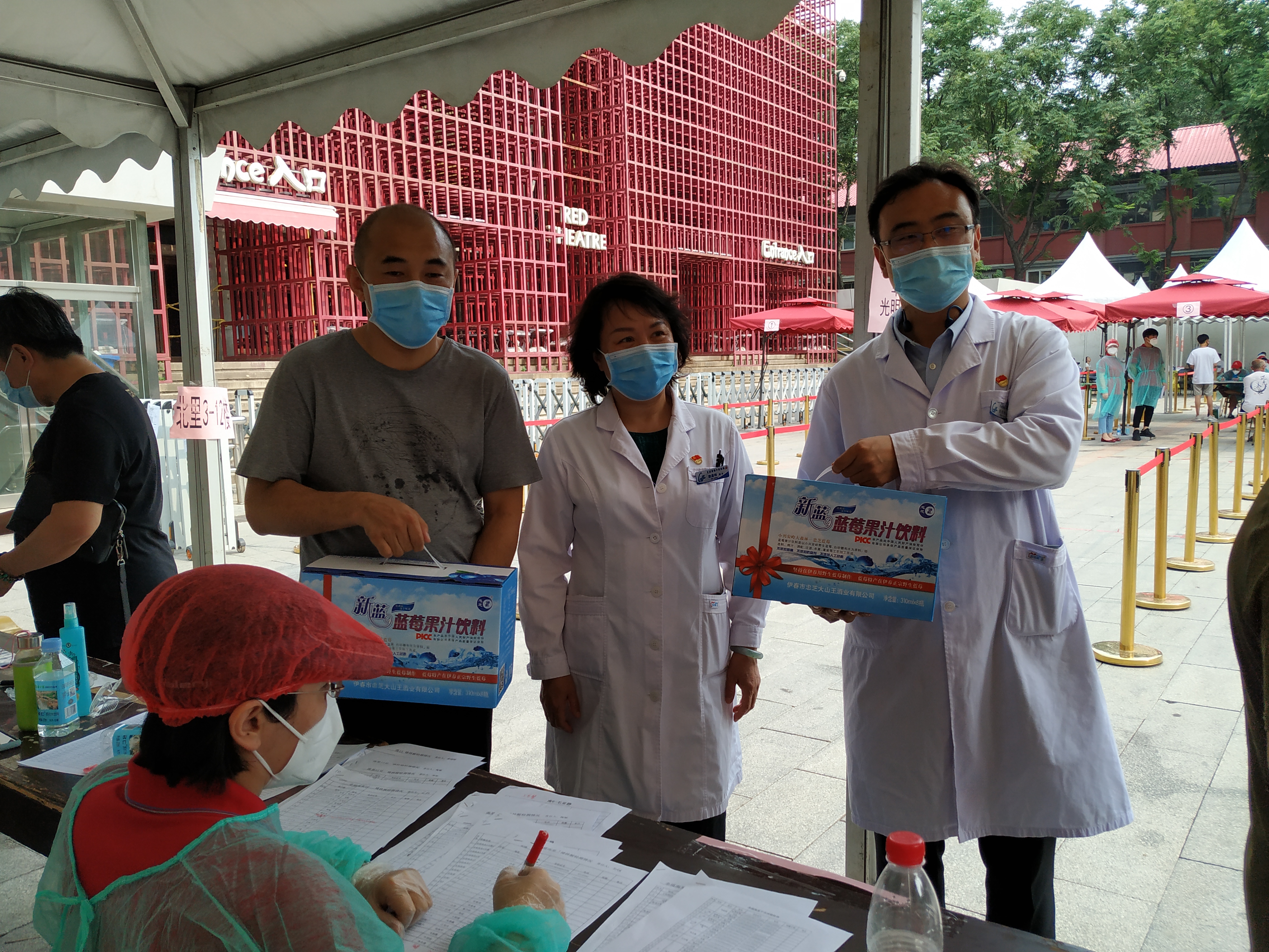 刘富勇委员向参与核酸检测人员赠送清凉饮料