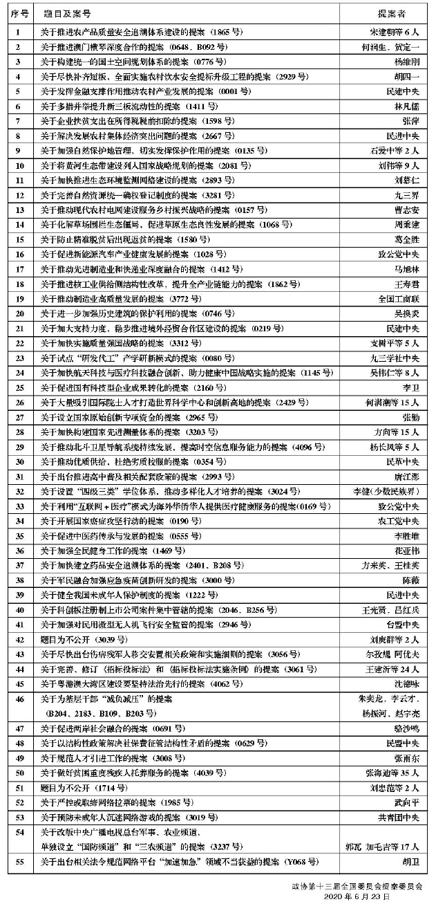 2019年度(全国政协十三届二次会议)好提案公布