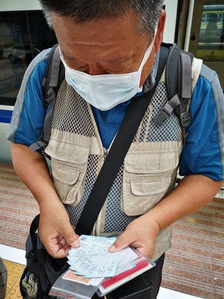 在站台上,记者遇到了一位来自山东的老先生,他是一名火车爱好者,退休以来的十年间,几乎一直在路上。这位老先生还给记者展示了一摞火车票,这是他近十天里的行程?!拔液芄刈⒄庑┬孪呖ǖ男滦畔?,而且力争体验首趟列车,这趟车的票不好买,我一直刷一直关注,总算抢到了上海到张家港的票。”