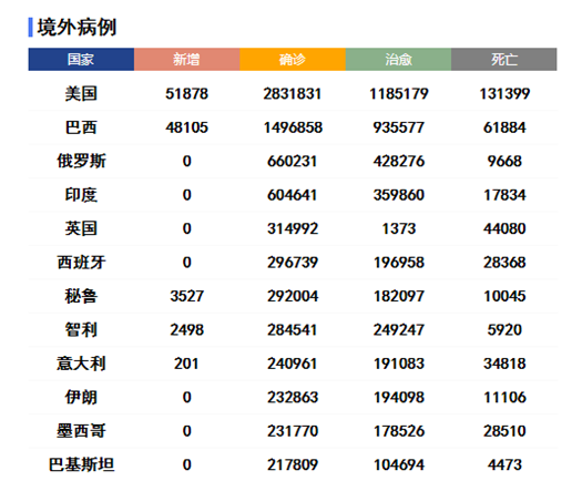 全球范围内,新冠确诊病例较前一日增加176102例,达到10533779例;死亡病例较前一日增加4787例,达到512842例。