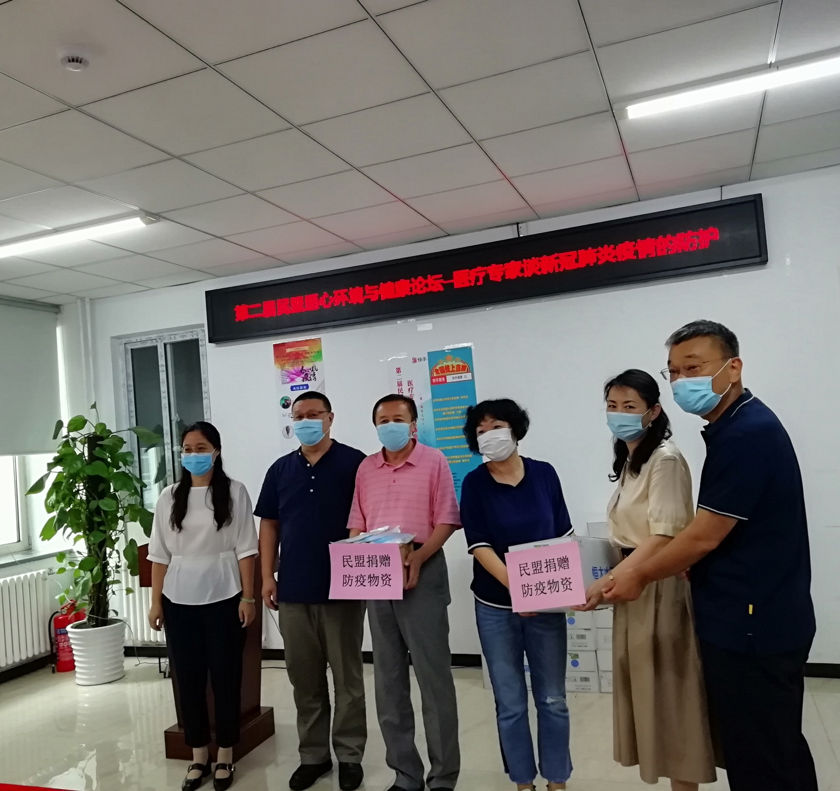人民政协网北京7月14日电 7月11日,民盟朝阳医卫委和民盟朝阳医务支部联合举办的第二届“民盟医心 环境与健康论坛”——医疗专家谈新冠肺炎的防治暨“学雷锋送健康民盟医疗专家公益行”防疫物资捐赠活动举办。民盟北京市委秘书长严为、民盟朝阳区委副主委陈巴黎、安贞街道工委副书记高飞、人大办主任葛冬梅、安华里社区党委书记侯兵、民盟朝阳医卫委委员、民盟朝阳医务支部盟员以及志愿服务人员近30余人参加现场会议。本次论坛采取线上和现场同时进行的方式,民盟朝阳医务支部、民盟朝阳医卫委副主任委员谢国庆与首都医科大学附属北京安贞医院血液科主任陈烨教授主持现场论坛活动。
