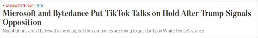 报道称,7月31日,特朗普在“空军一号”上对记者明确表示,他反对由一家美国公司收购TikTok并继续在美运营的协议,这让微软和TikTok母公司字节跳动的收购谈判陷入僵局。