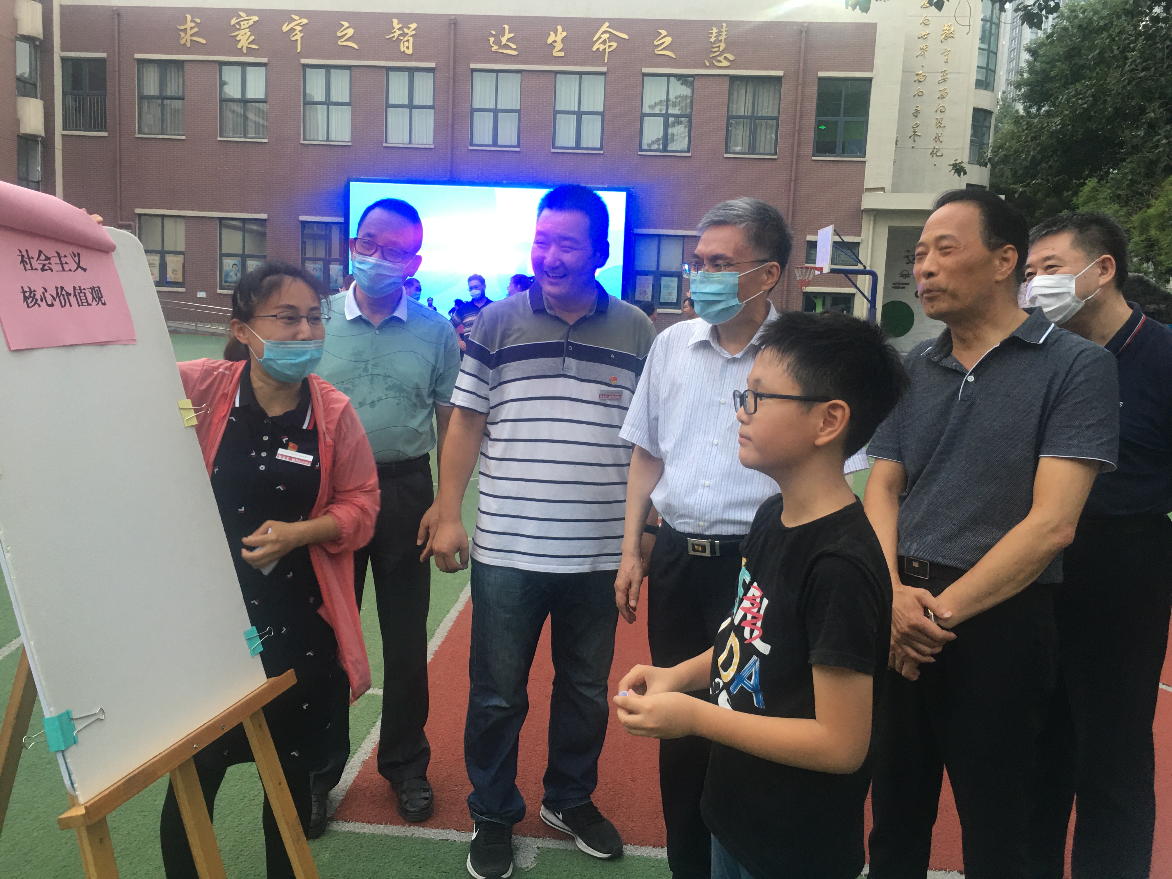 看到孩子们兴高采烈地在玩“你来比划我来猜”游戏,姚志毅带领委员们也参与进来。委员们惊喜地发现,当出现“社会主义核心价值观”的时候,三年级的小朋友马上就背出了具体内容。姚志毅为孩子们竖起大拇指。委员们与各位校长交谈,交流新时代小学生社会主义核心价值观教育是一项“功在当代,利在千秋”的工程,并提出了具体教学实践的相关建议。