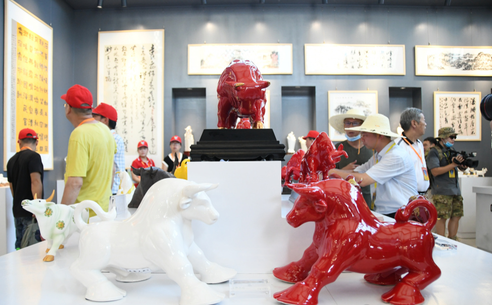 “天下第一牛馆”是以“?!蔽魈獾淖酆弦帐豕?,馆里展览了来自全国优秀大师的陶瓷、书法及绘画作品,作品都是以“?!焙汀笆I骄扒蔽魈庠兀彩鞘I骄扒囊淮罅恋?,既提升了游览趣味性,也丰富了景区文化内涵。