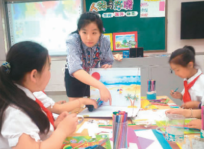 河南郑州经开区举行的学生美术观摩课堂。(资料图片)