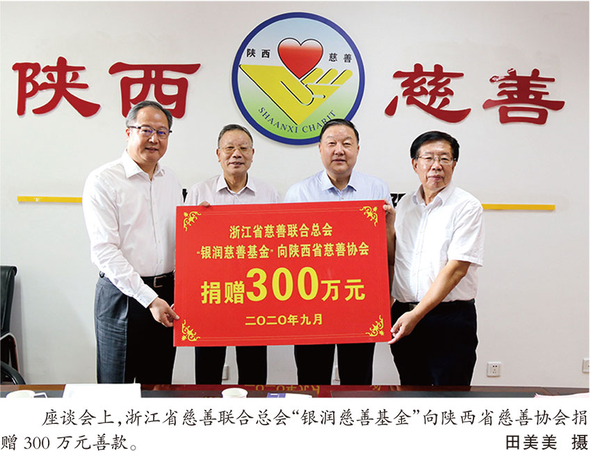 慈善公益报(胡运森 本报记者 钟伟)9月8日至10日,浙江省慈善代表团赴陕西考察调研。期间,在西安举行浙陕慈善工作座谈会,陕西省慈善协会会长吴前进、浙江省慈善联合会会长陈加元等相关负责人出席座谈会,并就两省慈善事业发展情况进行了深入交流。