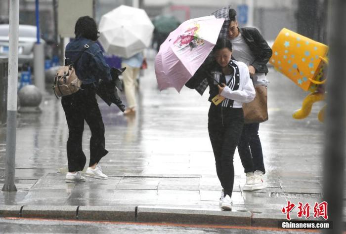 资料图:市民顶风冒雨出行。 中新社记者 张瑶 摄