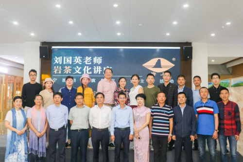 畅游九曲水,敬品岩上茶??庞偷碧煜挛纾谀ㄊ泻J锴烀?6茶院的阶梯教室里举办了《刘国英老师岩茶文化讲座》。中国制茶大师——刘国英先生用芟繁就简、通俗易懂的的语句,免费为茶友们讲解了:茶叶的基本知识、武夷茶的历史和文化底蕴及独特之处、关于大红袍的含义等;然后,大家纷纷和刘国英老师合影留念;接着,宁波籍茶行业专家林宇晧先生与他边品茗边有关茶文化、茶知识、茶合作和茶流通等方面进入了深入显出地交流。(洪斌)