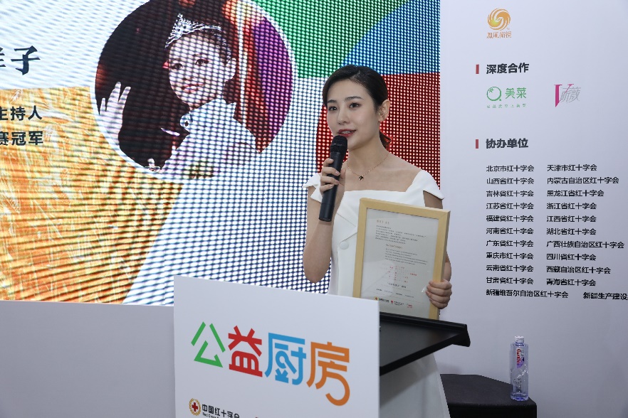 郭长江为凤凰卫视主持人、2015中华小姐环球大赛冠军郭洋子颁授“公益厨房”首位“公益料理人”聘书。作为中华小姐的代表,郭洋子表示希望能在接下来“公益厨房”的一系列活动中,用华姐的智慧与魅力,行动与爱心,将优质的“红品”介绍给更多的人群,将它们的故事展示给更多的观众,带动更多爱心人士扶农助农。