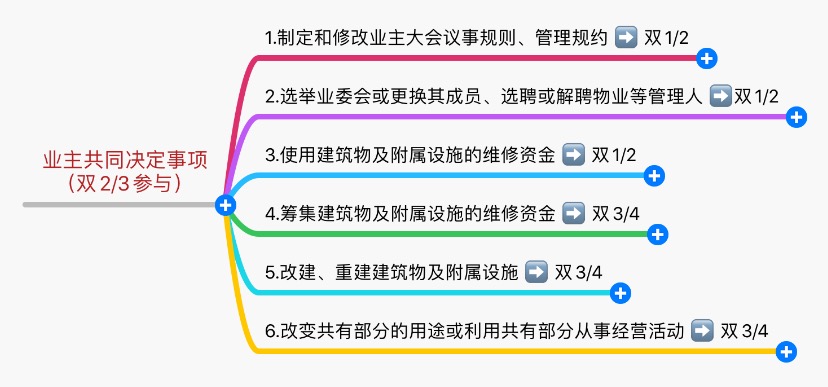 业主共同决定事项,应当由专有部分面积占比三分之二以上的业主且人数占比三分之二以上的业主参与表决。筹集建筑物及附属设的施维修资金,改建或重建建筑物及其附属设施,改变共有部分的用途或者利用共有部分从事经营活动,属于重大事项,需经参与表决专有部分面积四分之三以上的业主且参与表决人数四分之三以上的业主同意。决定其他事项,需经参与表决专有部分面积过半数的业主且参与表决人数过半数的业主同意。