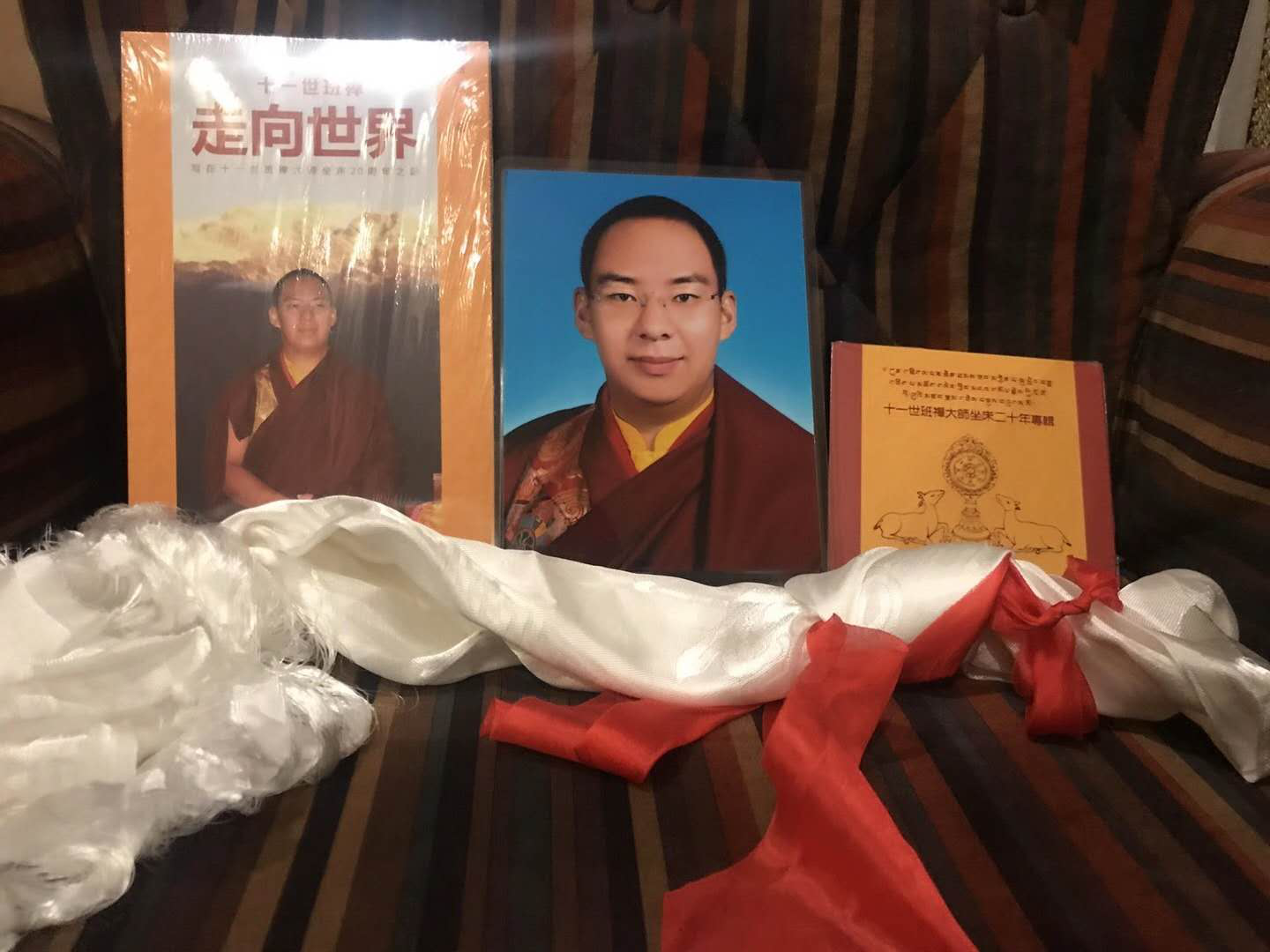 第十一世班禅向张银俊理事长一行赠送了哈达