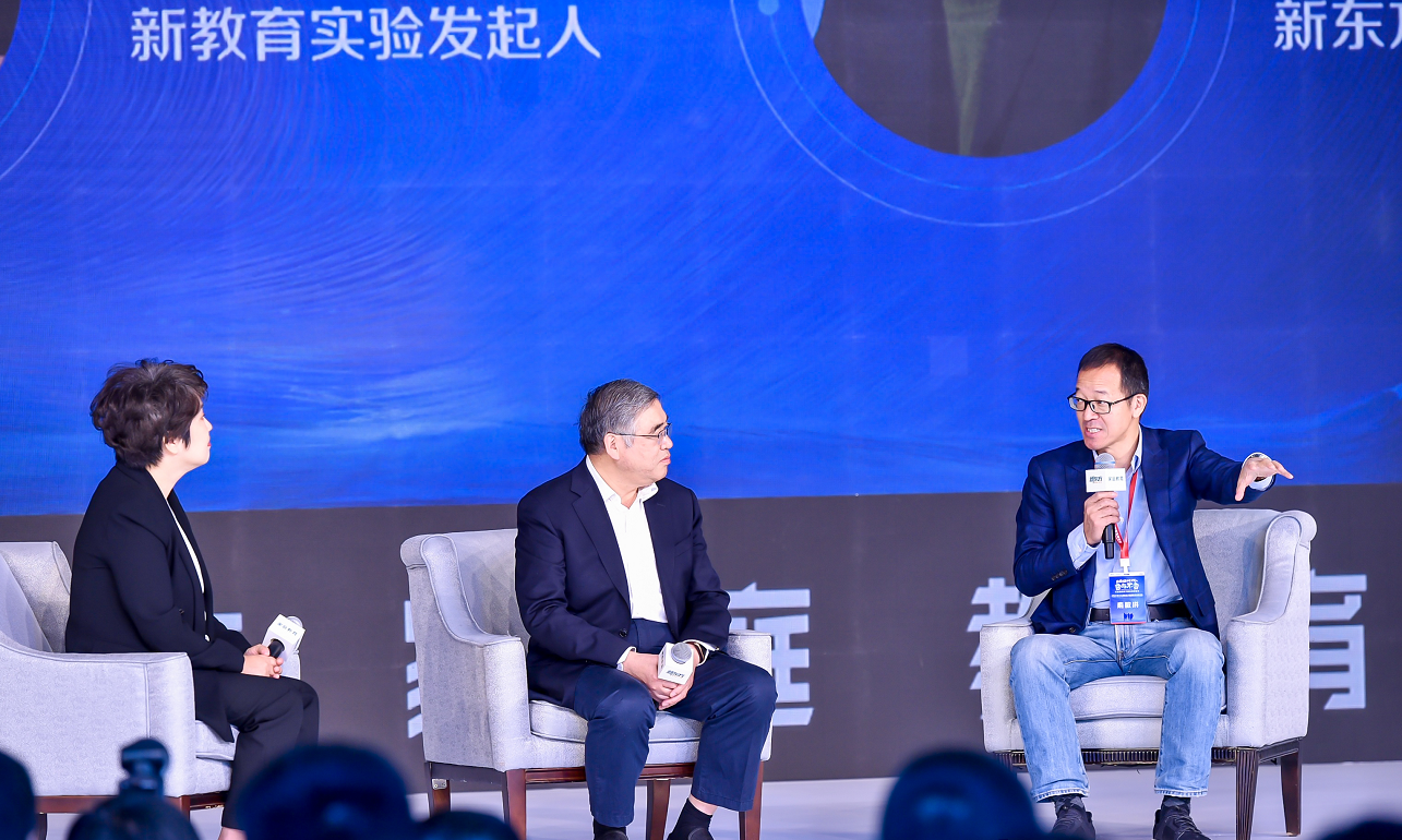 上午的圆桌对话环节由张丹丹主持,中国民主促进会中央委员会副主席、新教育实验发起人朱永新与新东方创始人、新东方教育科技集团董事长俞敏洪共话了教育的本质。朱永新认为教育的本质应该是帮助人能够过一种幸福的生活。俞敏洪认为“教育的本质就是让一个人成功和快乐,是让一个人有良知和良心?!绷饺嗽谙殖∑灯蹬龀鏊枷氲幕鸹?引发阵阵掌声。