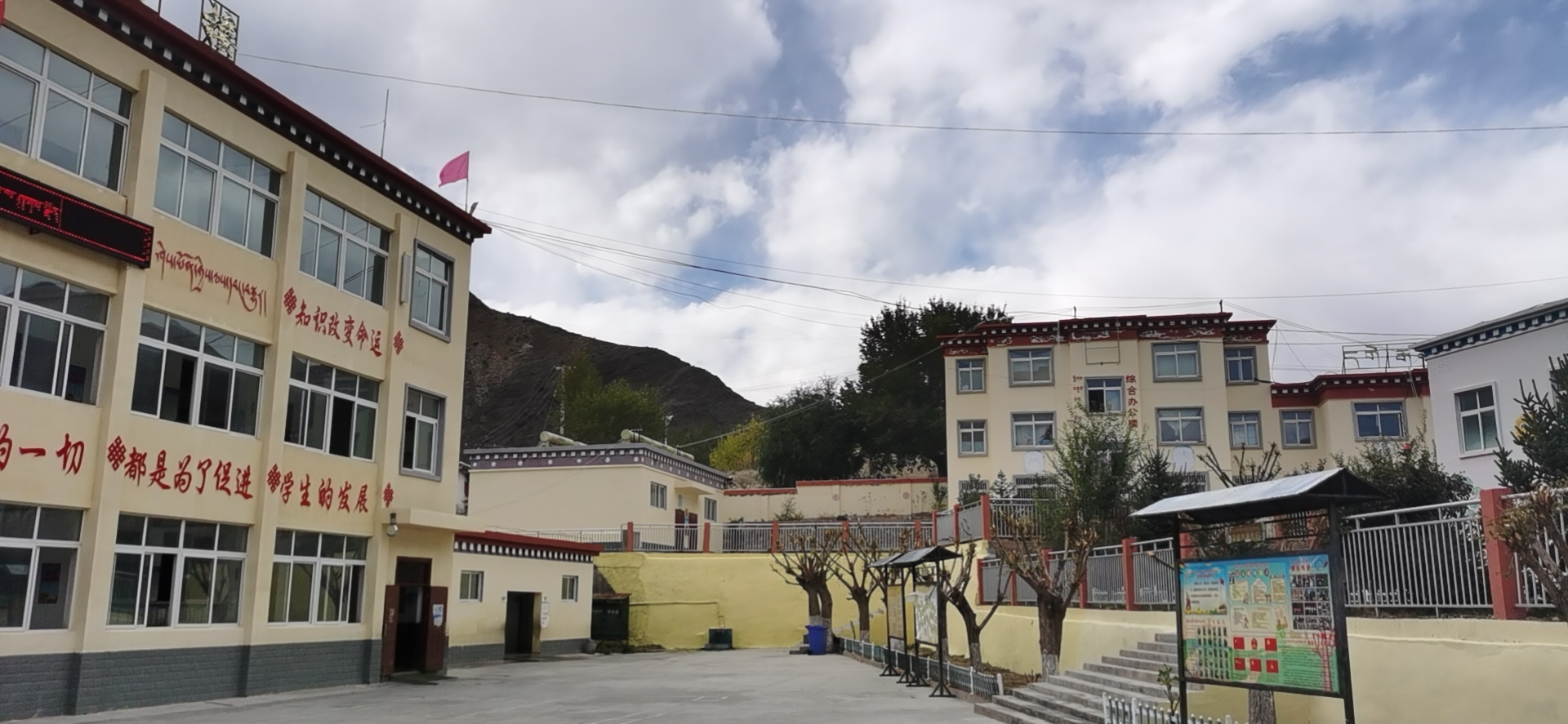 我上一年级的时候,学校的教室是几间由土坯、石头做成的房子。学校就由这样的房子四周围绕而成,中间有三四十平方米的小院子。在那时,除了家乡的高山峡谷、大河小溪、田间树林外,学校里没有供学生专门活动的场地。当时学校只有大小两个班,也只有一位老师。老师的名字叫洛桑,也是我的启蒙老师。学校里的一切事情都是由他一人承担。他既教藏文又教数学,既教大班又教小班,是一位认真负责、默默奉献的优秀老师,我至今仍记得他上课时的样子。