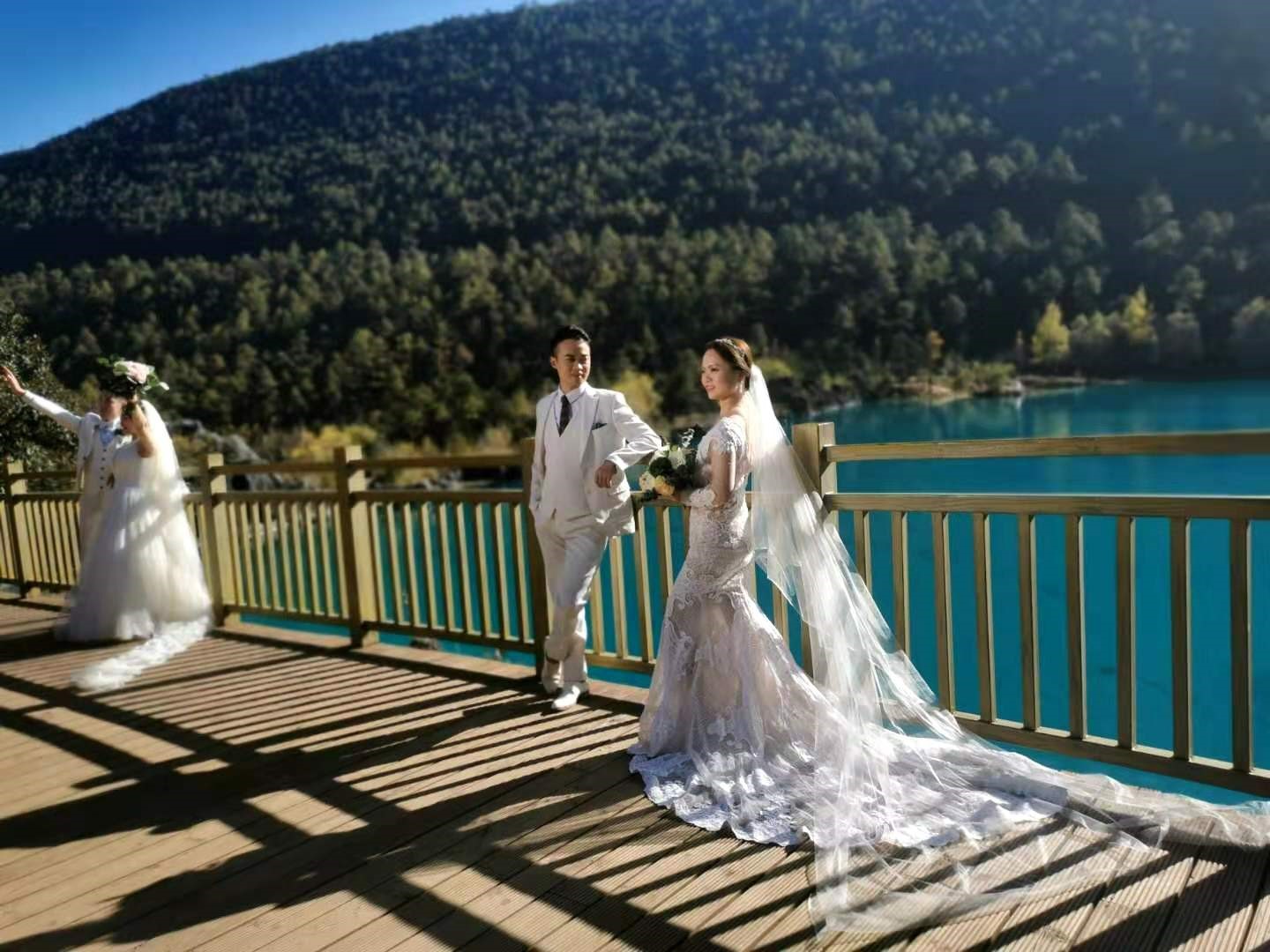 不只是蓝月谷,整个玉龙雪山独特的风景都吸引着全国各地越来越多的新人前来拍摄婚纱照。