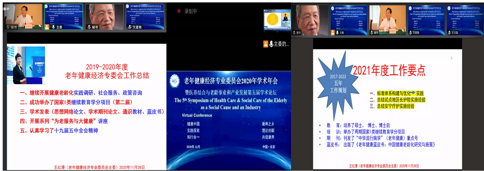 人民政协网北京11月29日电 (记者 刘志国)中国卫生经济学会老年健康经济委员会2020年学术年会暨医养结合与老龄事业和产业发展第五届学术论坛于11月28日成功举行。本次会议主题:健康中国,康寿之乡;实践探索,理论创新;知行合一,共促康养等理念。来自全国东、西、中部及港澳台地区的近百余专家、学者、实务工作者“线上+线下”形式参加会议,会议由向春玲常委、王红漫主委共同主持。