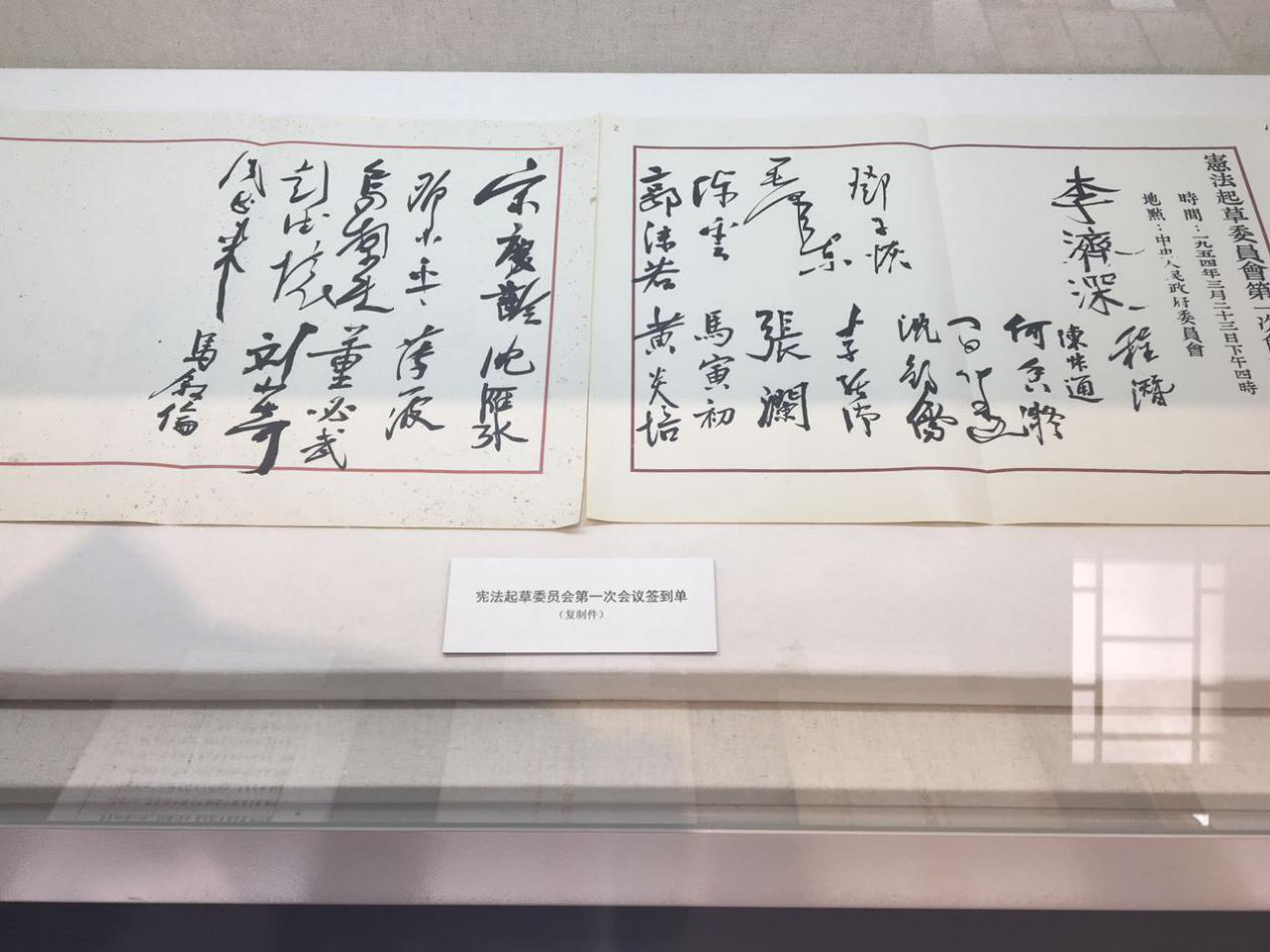 “五四宪法”与民进的渊源同样深刻。陈列馆中,庄严地摆放着当时宪法起草委员会的成员表,民进创始人马叙伦先生就是“五四宪法”起草委员会32名成员之一。老一辈民进创始人许广平、叶圣陶、雷洁琼等人多次参加了宪法草案的讨论修改。以马叙伦先生为代表的民进前辈们,努力履行参政党职责,为我国第一部宪法的制定发挥了积极作用。