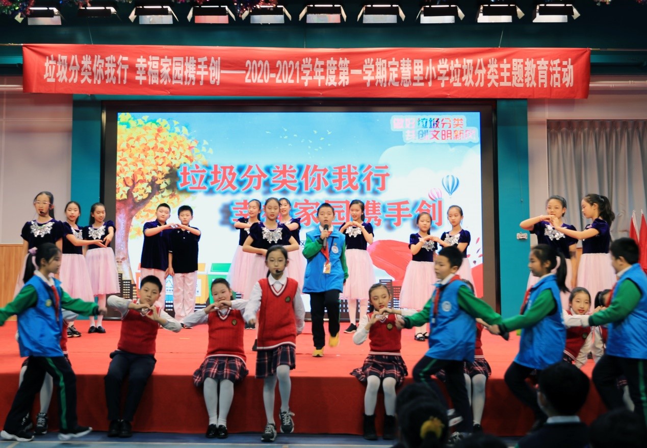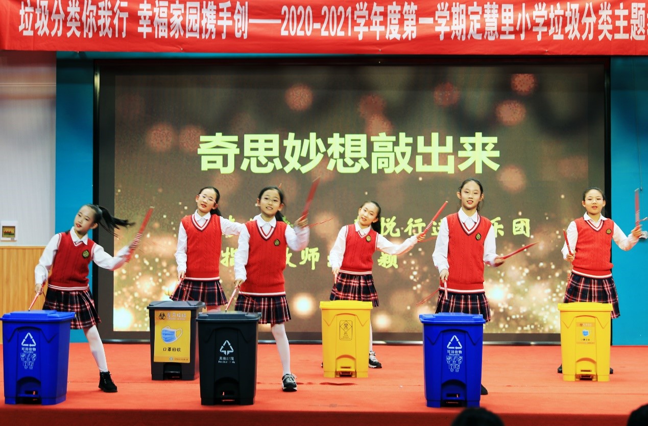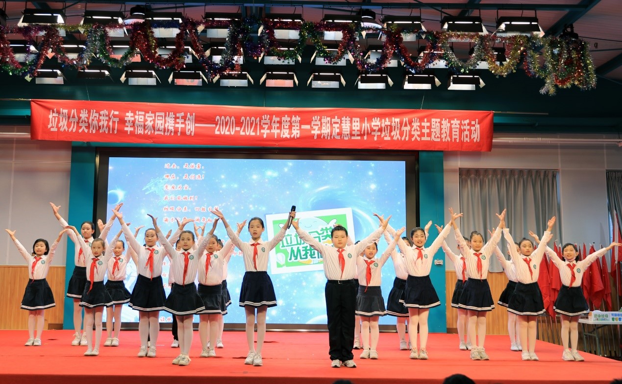 活动在一段科普短片中开始,使学生们对日趋严峻的环境形势有了深刻认识,并让大家知道“垃圾,是放错地方的资源”;舞蹈表演《垃圾分类动起来》和机器人社团的《自动分类,开启IT时代》充分活跃了现场气氛;垃圾分类互动游戏,更是将活动推向了高潮;变装秀、诗朗诵和戏剧表演,把垃圾分类知识浅显易懂的传递给了现场的每一位观众,赢得了阵阵掌声。这些由定慧里小学师生自主创作表演的节目,充分展现了学校扎实开展垃圾分类宣传教育取得的成果。此次活动,八里庄街道办事处副主任柳建桃、四级调研员姜薇、街道团工委书记张丽萍,八里庄学区管理中心主任赵畅,环保专家、学生家长代表、社区志愿者以及定慧里小学师生约500人参加。
