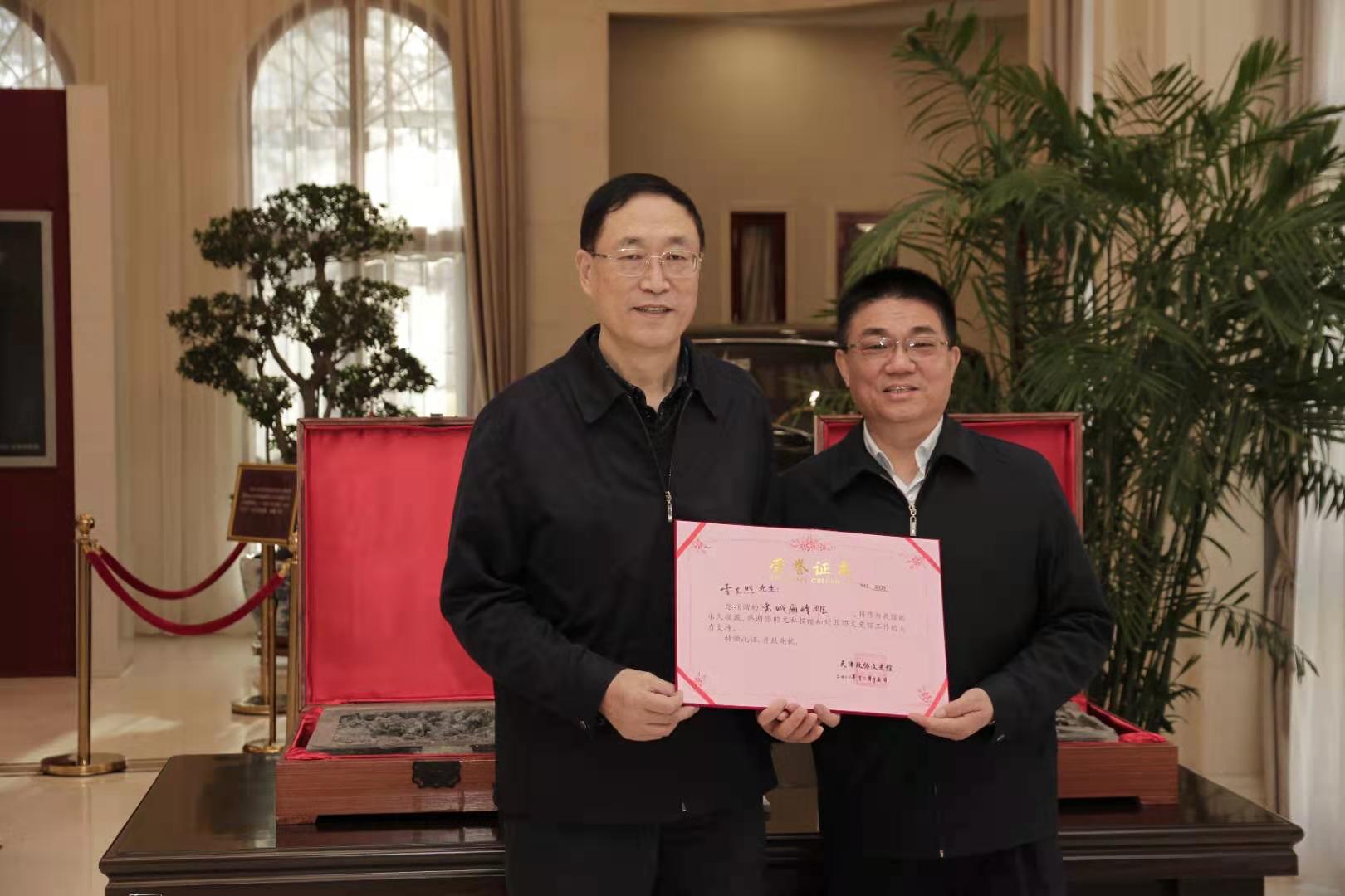 李光照表示,在2002年参加天津市古文化街拆迁改造时,在拆迁废墟中发现两块白灰覆盖的大型方砖,遂请专业人士清除涂于砖内的层层白灰,露出精美雕刻,经专家认定为清末民初时砖雕精品。为防止砖雕损坏和流失,李光照制作专门木盒将这对砖雕保存下来,至今已近20年。鉴于砖雕自身的艺术和历史价值,同时出于对人民政协事业深厚感情,李光照委员决定将两块砖雕捐赠天津市政协文史馆。