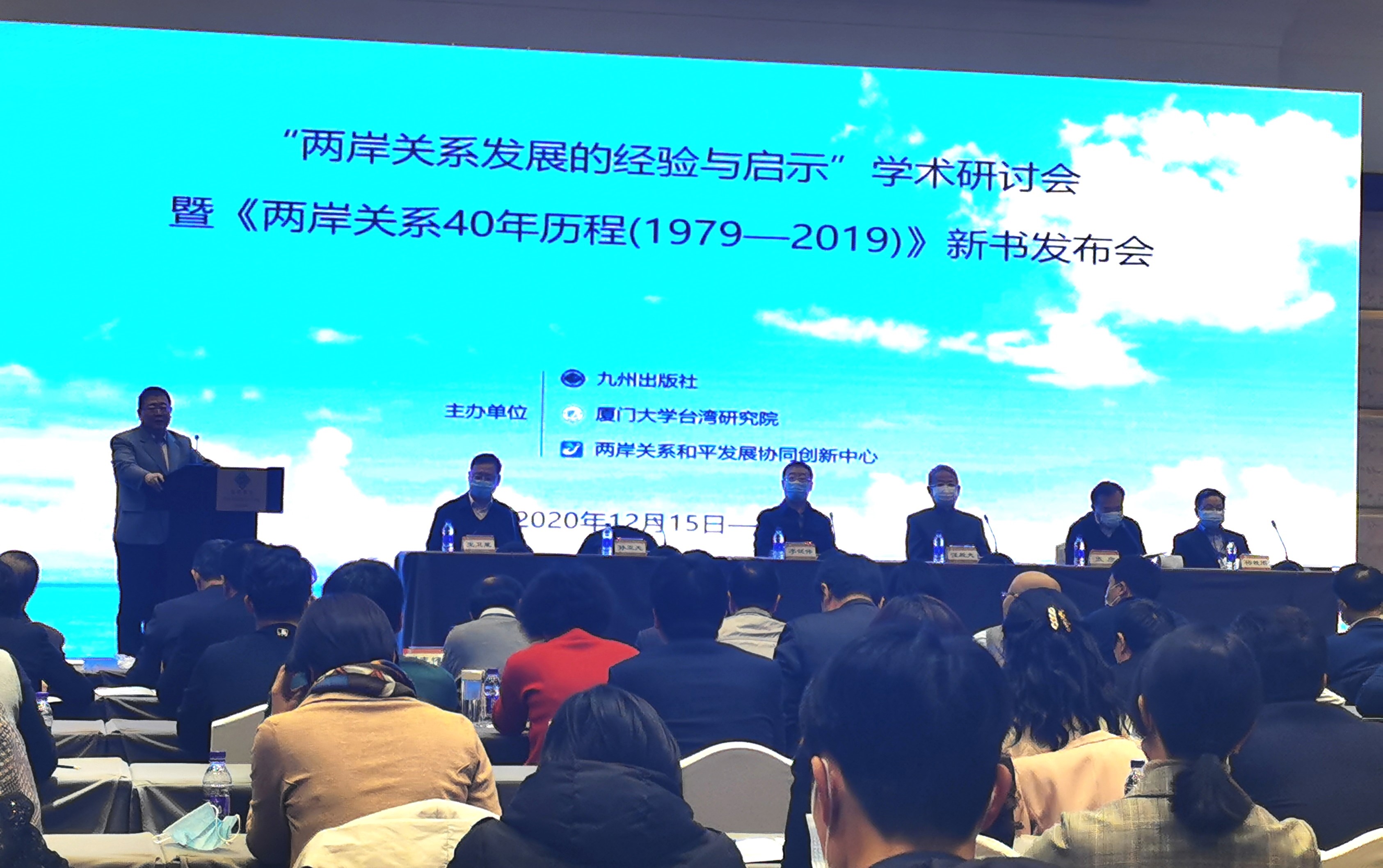 人民政协网北京12月17日电(记者修菁 )12月16日,“两岸关系发展的经验与启示”学术研讨会暨《两岸关系40年历程(1979—2019)》新书发布会在北京召开。研讨会由九州出版社、厦门大学台湾研究院、两岸关系和平发展协同创新中心共同主办,国内40余所高校与涉台研究机构的逾百位台湾研究相关专家学者及从业人员参加了当日活动。