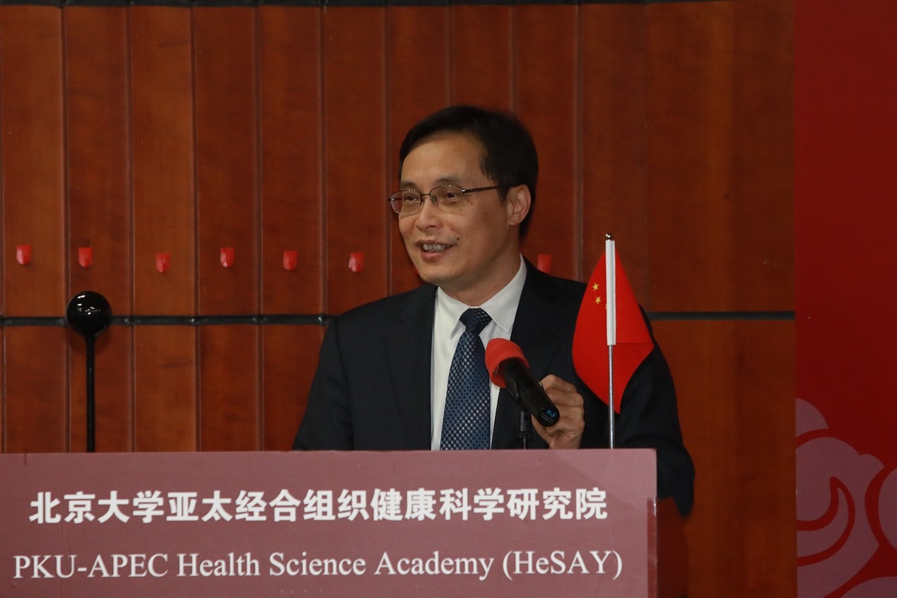 北京大学APEC健康科学研究院(HeSAY)院长郑晓瑛教授主持开幕式并介绍会议背景。