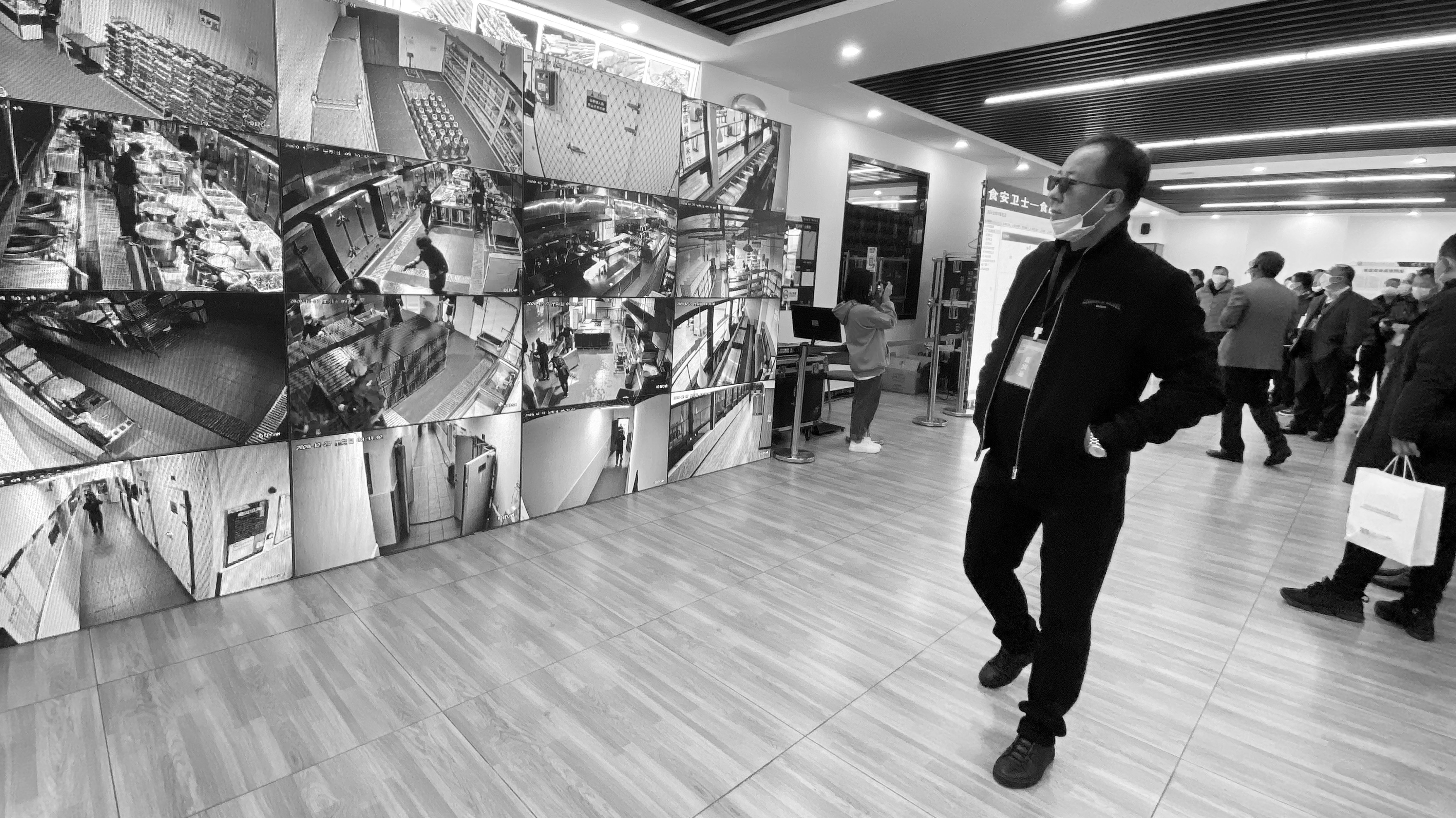 一位参观者在观察云南经贸外事学院的食品安全显示屏本报记者 顾磊 摄