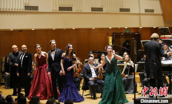 中新网北京1月8日电 第21届“相约北京”国际艺术节在北京音乐厅举办新年音乐会。著名指挥陈燮阳、琵琶演奏家赵聪、旅美著名歌剧演唱家田浩江、男高音歌唱家张英席、女高音歌唱家王庆爽、中阮演奏家冯满天、唢呐演奏家牛建党,以及来自美国、俄罗斯、塞尔维亚的iSING!国际青年歌唱家们,与中国交响乐团和中国交响乐团合唱团,为观众献上振奋人心的时代旋律。