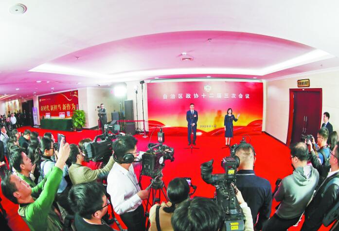 自治区政协十二届三次会议首场“委员议事”集中采访现场