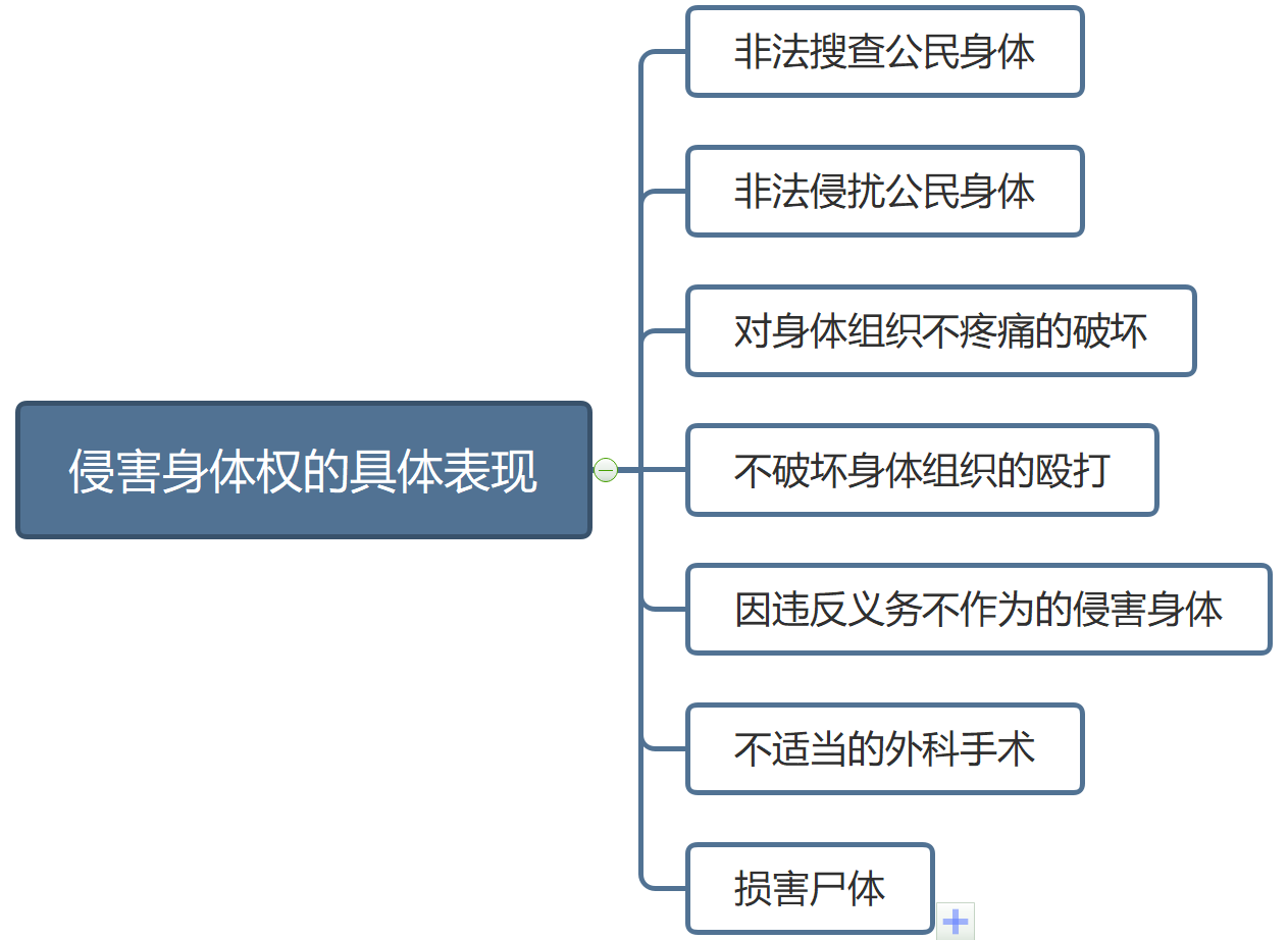 侵害身体权行为,是指以身体权为侵害客体的侵权行为,包括损伤身体内部或外部组织的侵权行为。具体表现为以下7种方式: