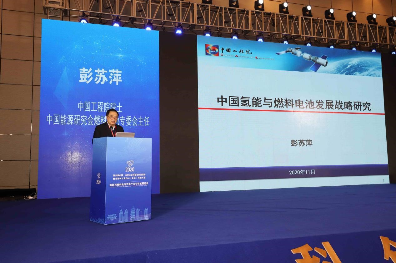 中国工程院院士、中国能源研究会燃料电池专委会主任彭苏萍教授到会并发表了题为《中国氢能与燃料电池发展战略研究》的主旨演讲。彭苏萍教授强调,我国能源体系以化石能源为主,碳减排压力巨大,环境污染问题突出。氢通过燃料电池做到低碳、安全、高效、清洁,氢能源与燃料电池对推进能源革命有着重要的作用,交通运输中氢能与电力得到了互补融合。氢能源与燃料电池产业链长、技术密集,而燃料电池技术与氢能源产业直接关联,是核心环节。他介绍了世界主要发达国家均大力发展氢能产业,制定氢能发展战略,氢能燃料电池不仅应用于车辆还有分布式及数据中心应用、大型发电、家庭热电联供等等方面,2050年氢能将占全球总能耗的五分之一。对于我国发展氢能源与燃料电池,彭教授认为我国有良好的基础,但与国外也存在着差距,在未来10-20年将是我国氢能源与燃料电池产业发展的重要机遇期,需要紧密联系我国能源发展实际,助力实现氢能源与燃料电池高质量发展,从战略、政策、技术、资金、国际合作等方面积极谋划,通过改革创新破解发展难题。氢能发展战略与规划布局业已全面展开。