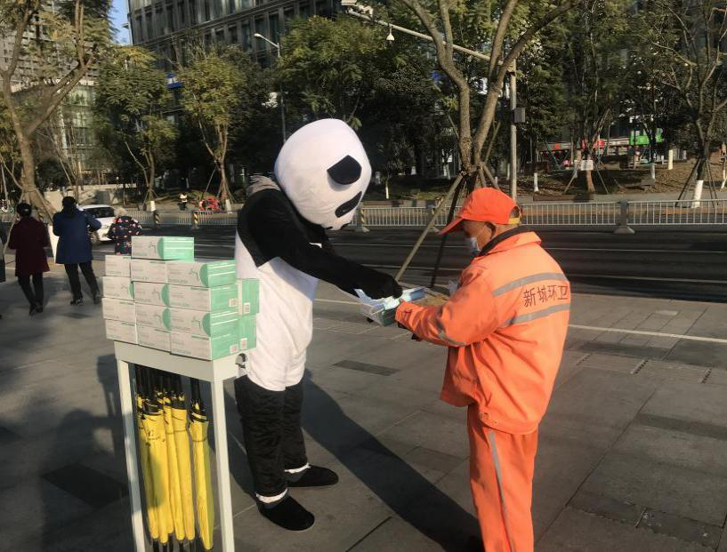 同时值新春佳节的正月初八,轻松驿站为助力开工,联合社会各知名企业,在高新区复工人流最为旺盛的地区、也是轻松驿站落地的地铁口,开展了一轮爱心口罩大放送的活动,赶在上班人潮涌出地铁口的高峰期为大家派发口罩,以更加喜闻乐见的形式,由穿扮可爱的玩偶在时尚科技的轻松驿站外面,为大家派发开工口罩,获得众口喝彩,大家不仅接下口罩,更是频频拍照,记录下轻松驿站的美好祝福。