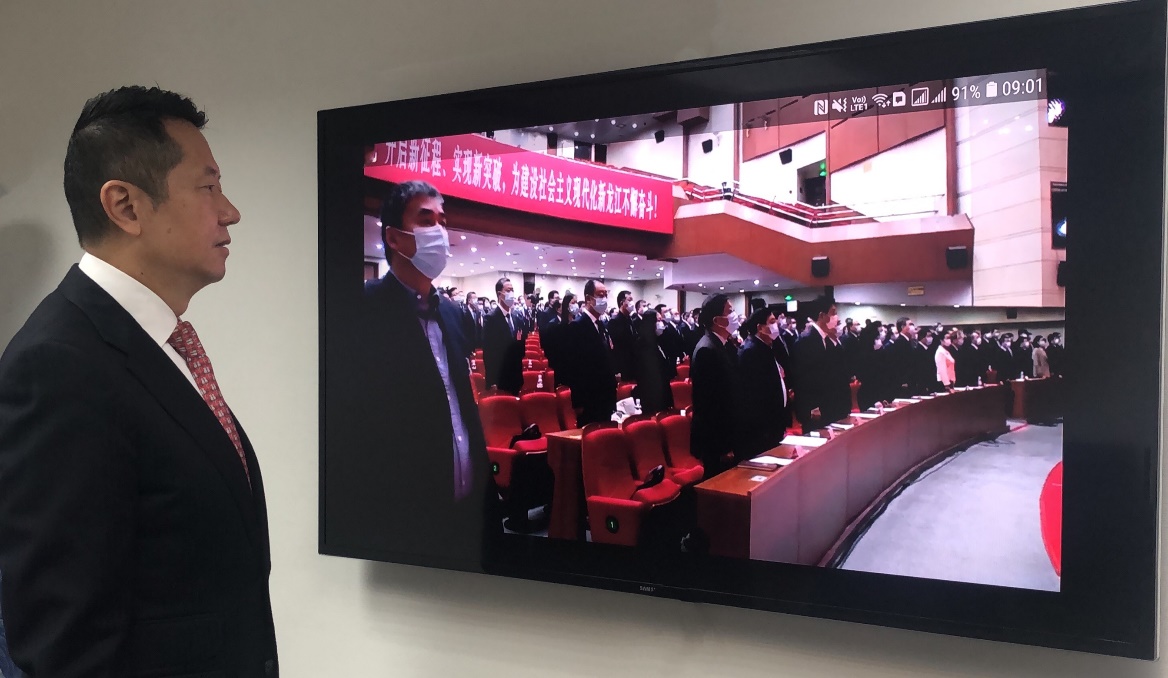 全国政协委员、黑龙江省政协常委、香港黑龙江经济合作促进会会长魏明德线上参加开幕式
