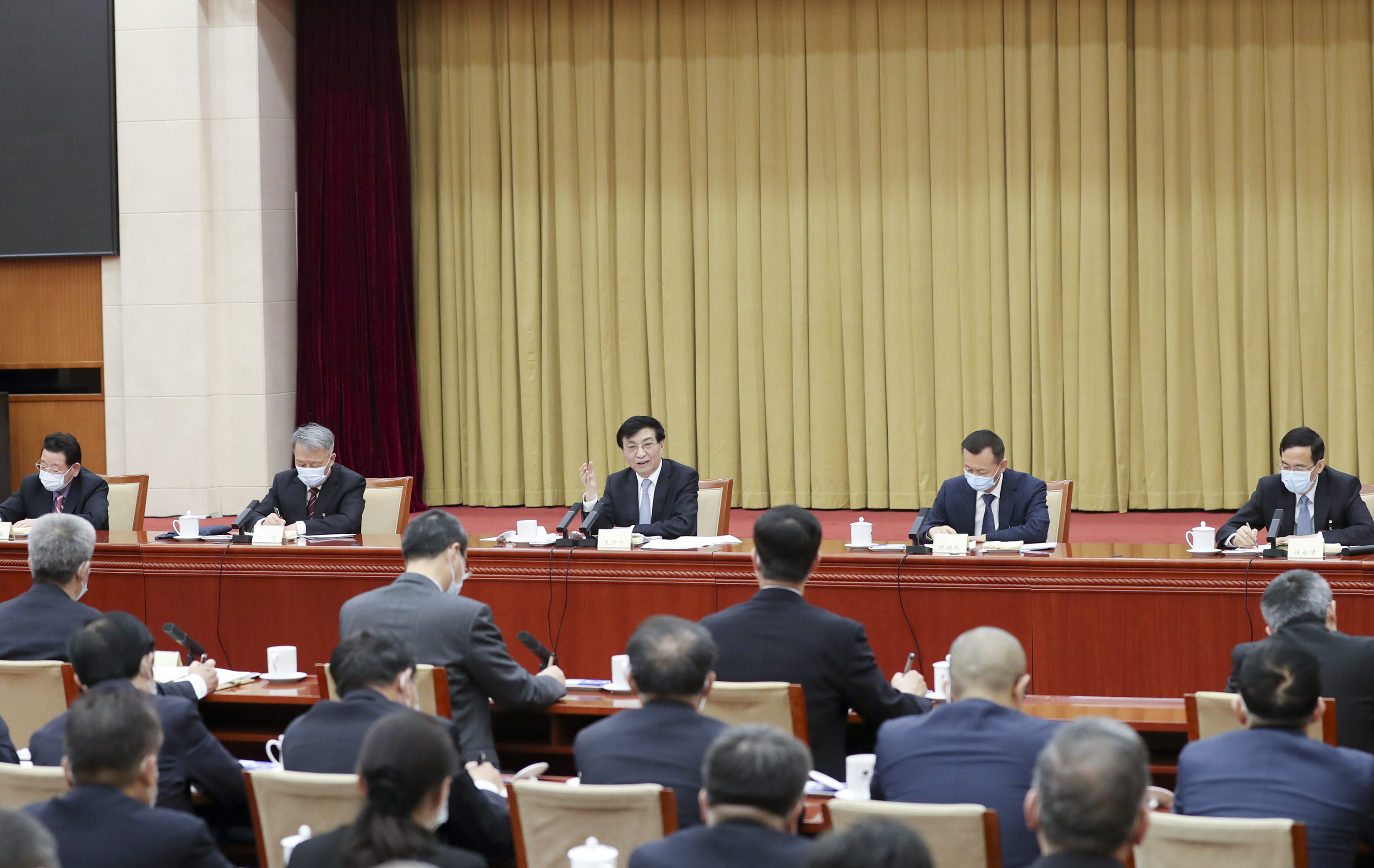 3月6日,中共中央政治局常委、中央书记处书记王沪宁看望出席全国政协十三届四次会议的社会科学界委员并参加讨论。新华社记者 丁海涛 摄