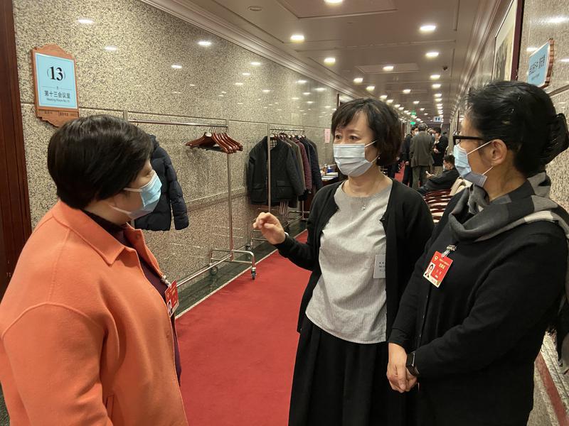 小组会间隙, 对外友好界镜头里的“女神”们会后还在不停歇地讨论。 特邀委员记者 顾犇 摄
