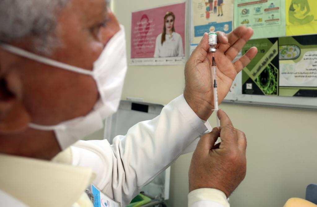 3月7日,一名医护人员在伊拉克巴格达准备进行新冠疫苗接种工作。(新华社发,哈利勒·达伍德摄)