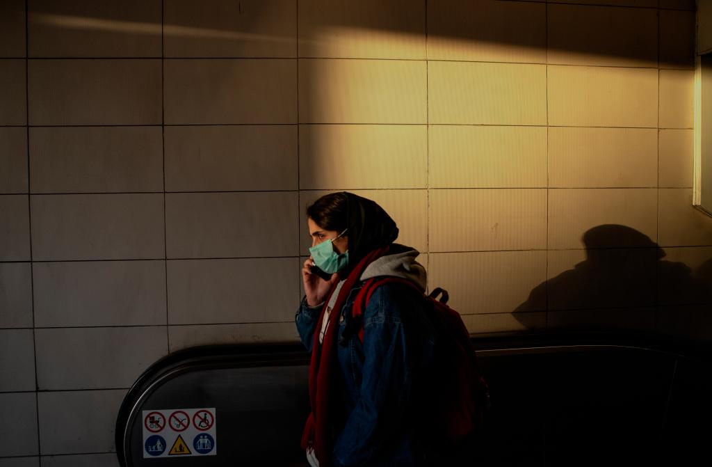 1月23日,一名佩戴口罩的女子走出伊朗首都德黑兰的一处地铁站。(新华社发,艾哈迈德·哈拉比萨斯摄)