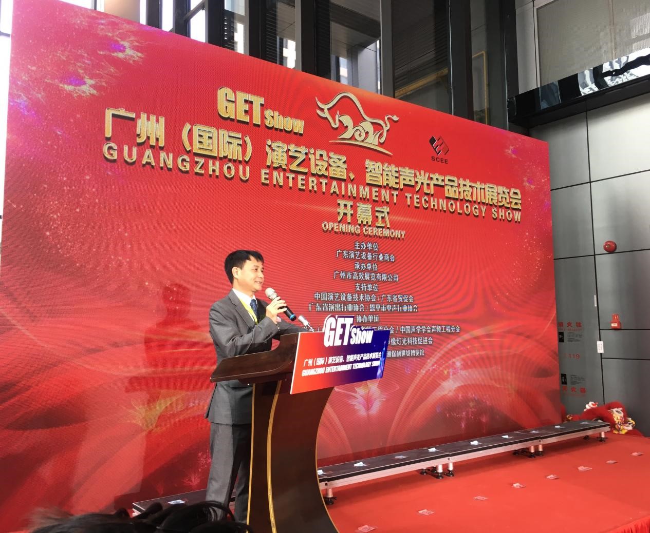 广东演艺设备行业商会会长王锐祥在开幕式上致辞