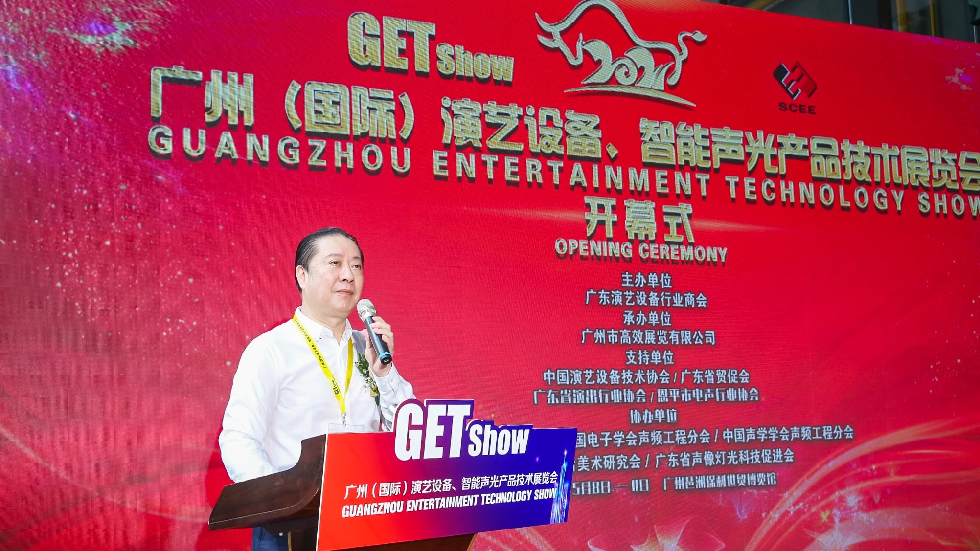 广东演艺设备行业商会会长王锐祥在致辞中表示,今年展会的举办来之不易,后疫情时代,GETshow将继续放大“会展”效应,除了传统展览展示之外,还紧跟产业融合发展新趋势,同期举办多场丰富的活动,希望通过此次展会为抓手,促进技术与艺术融合交流,加快行业升级发展。