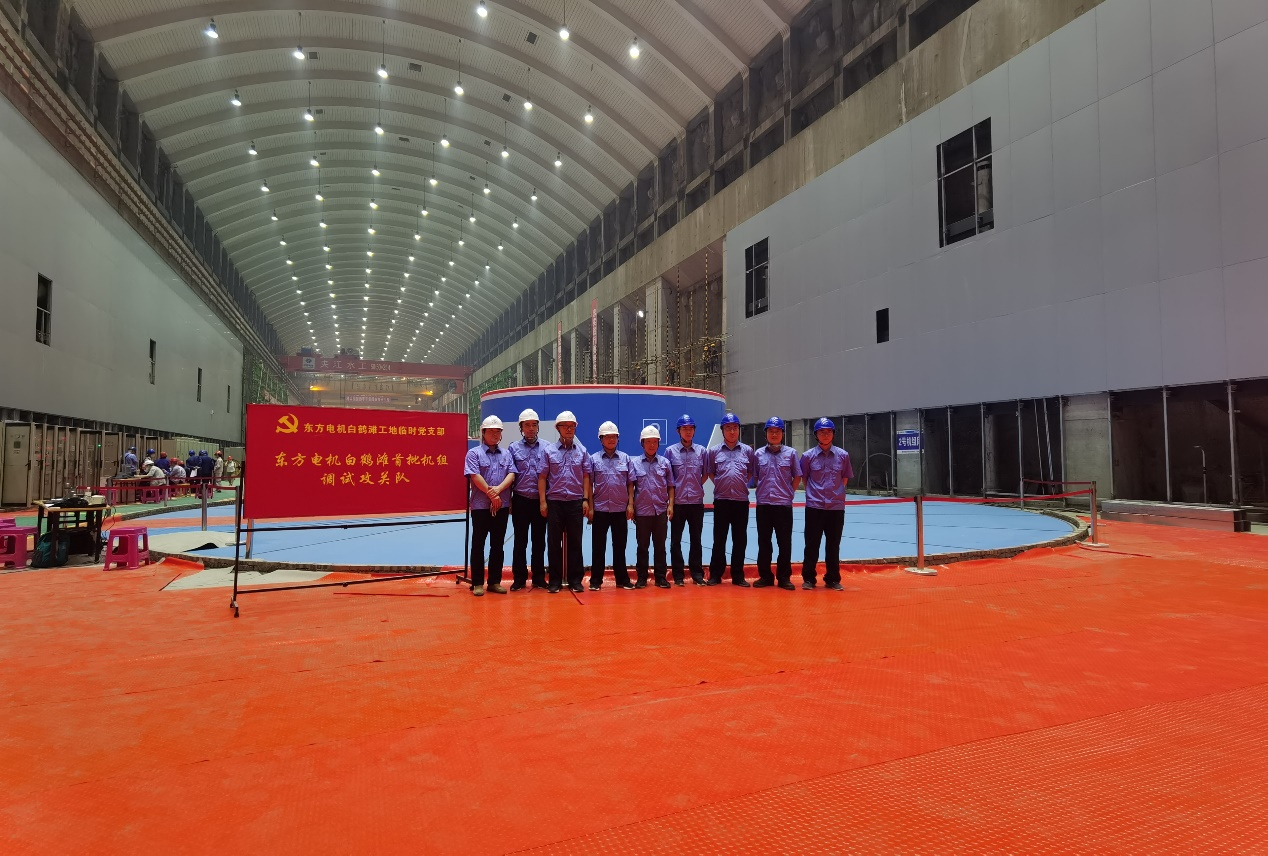 左、右岸分别布置8台单机容量100万千瓦的混流式水轮发电机组,东方电气集团东方电机承担了左岸(在四川境内)8台机组的研制任务。根据施工总体规划,白鹤滩水电站大坝已于2021年5月下闸蓄水,首批机组将在2021年7月1日投产发电电站,并计划于2022年全部投产发电。