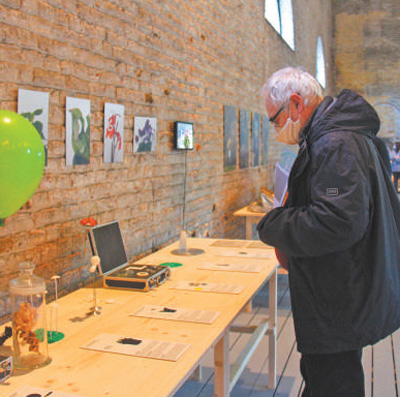在比利时格朗霍奴矿区厂房改造的博物馆,游客参观展览。