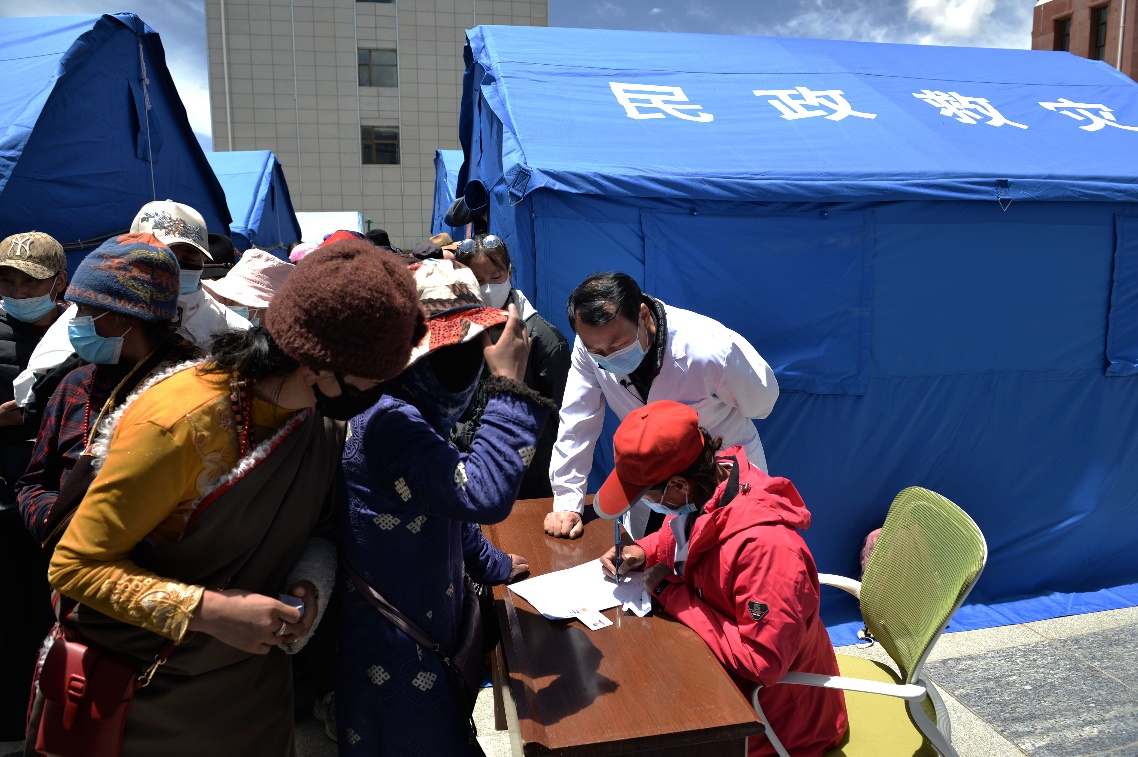 北京大学人民医院副院长王建六在玛多县地震灾区筛查现场