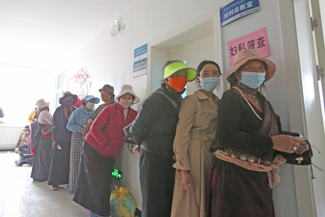在义诊现场,听说首都医疗专家来到了果洛,当地居民拿着医疗档案,扶老携幼赶往6个筛查点,每个筛查点门口都排起长队。