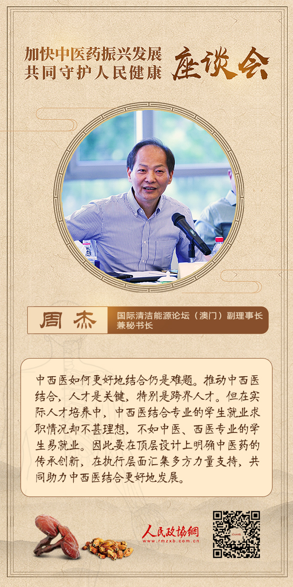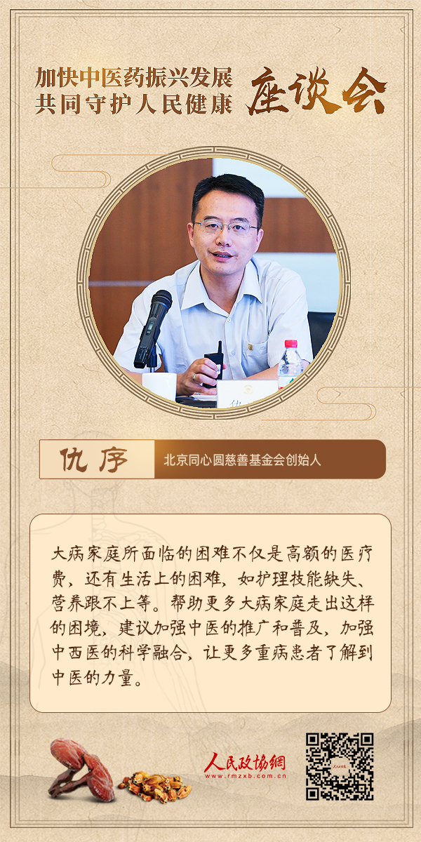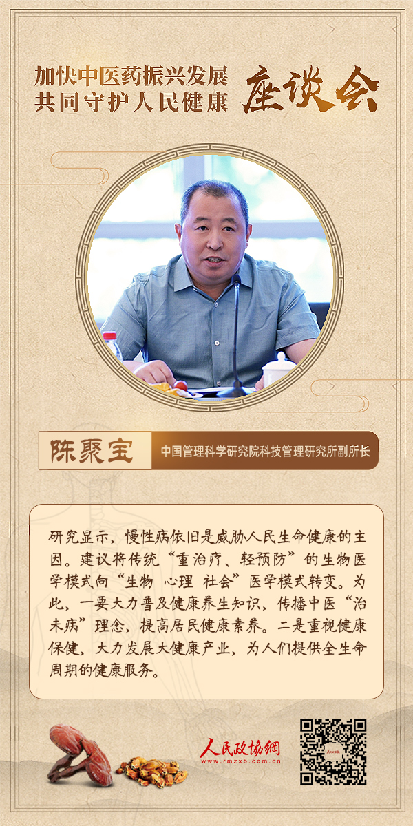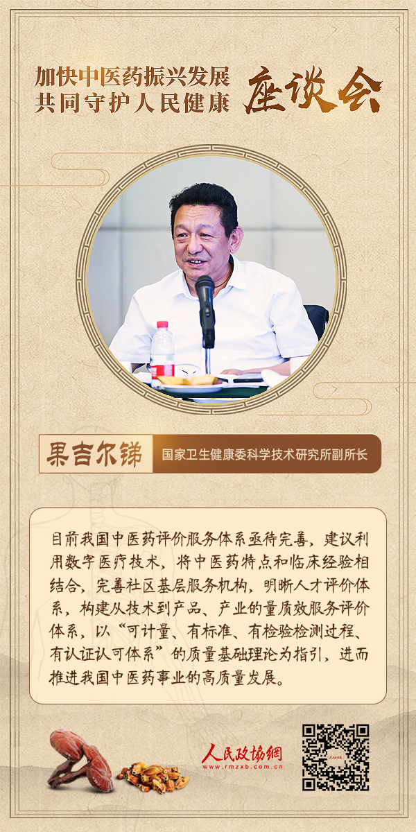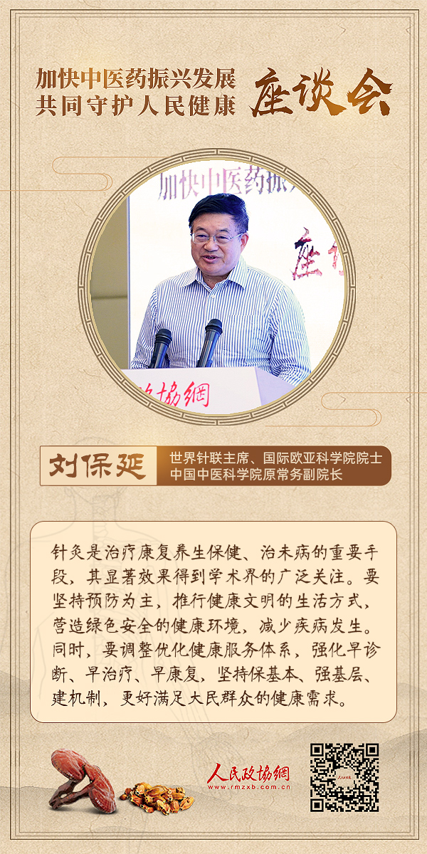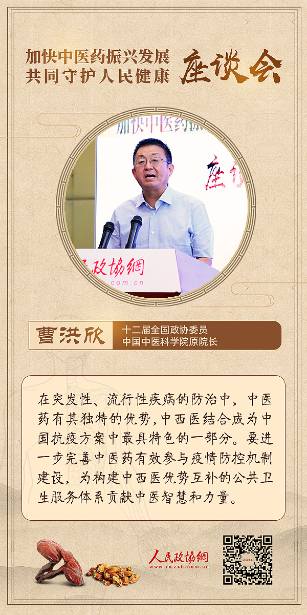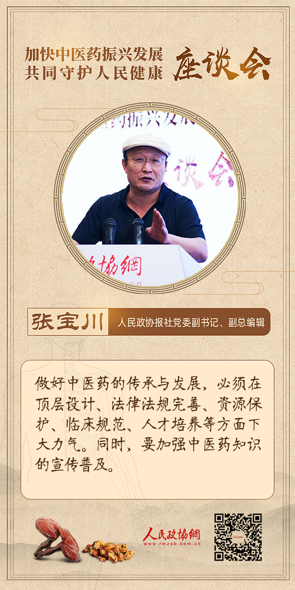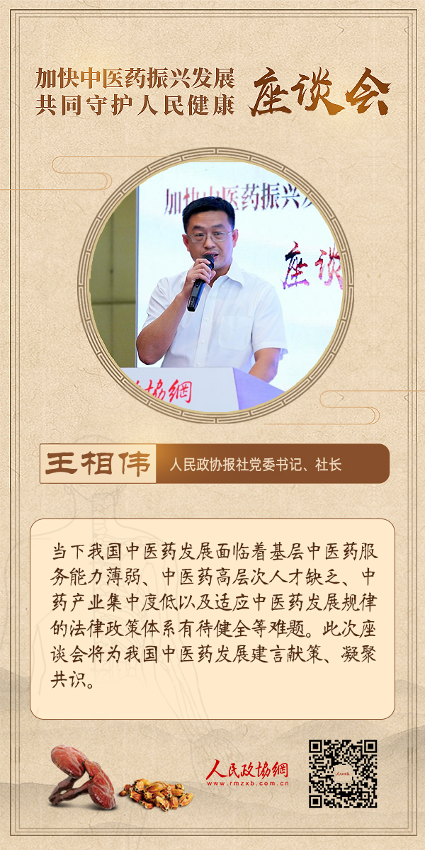 6月18日下午,为深入学习贯彻习近平总书记关于中医药工作的重要讲话和重要指示精神,推动中医药高质量发展,由人民政协报?人民政协网主办的“加快中医药振兴发展共同守护人民健康”主题座谈会在人民政协报社举行。与会嘉宾围绕“公共卫生服务体系建设”“中国特色的卫生健康发展模式”“中医药普惠发展体系建设”等议题展开深入讨论。