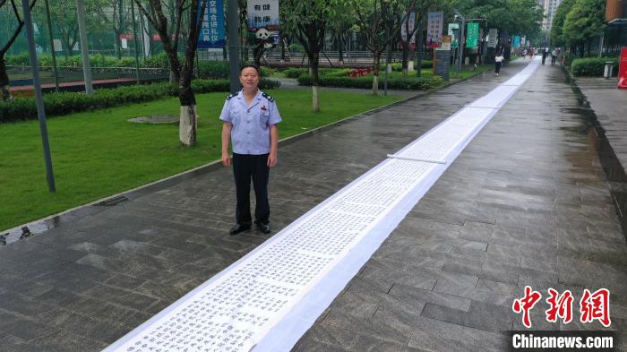 该长卷书写版本为2018年纪念马克思诞辰200周年由人民出版社出版的《共产党宣言》一书,长卷全文采用简化字隶书,共计18161字,每行12字,行高69厘米,行宽6.5厘米,总行数1543行,总长度100米。这份手书作品出自青白江区税务局党员舒世林之手写,前后历时2个月完成。