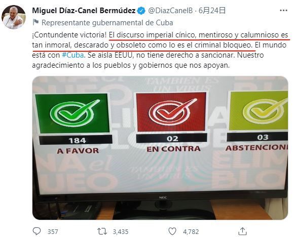△古巴国家主席迪亚斯-卡内尔社交媒体截图