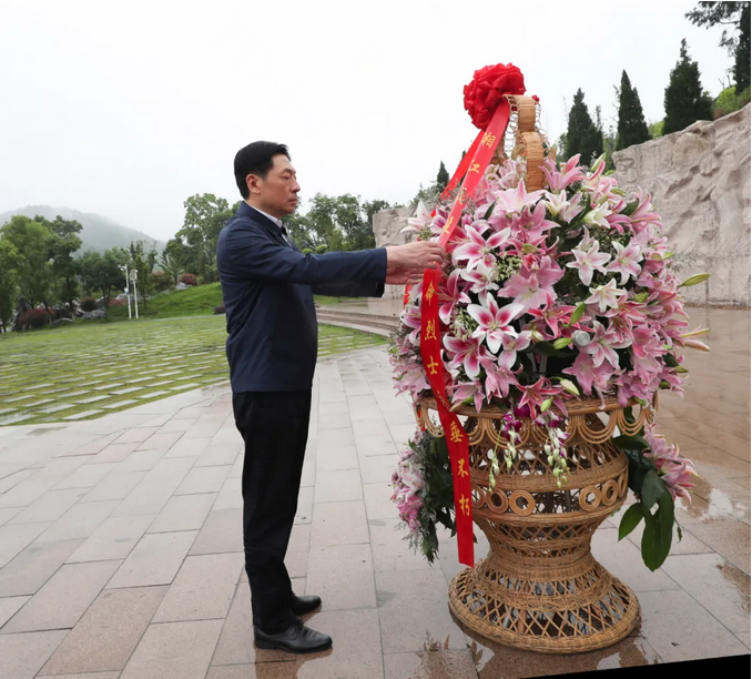 自治区政协领导班子成员在纪念园凭吊广场向湘江战役英勇牺牲的红军烈士默哀,敬献花篮,瞻仰“红军魂”雕塑,表达对革命烈士的深切缅怀和无限敬仰。